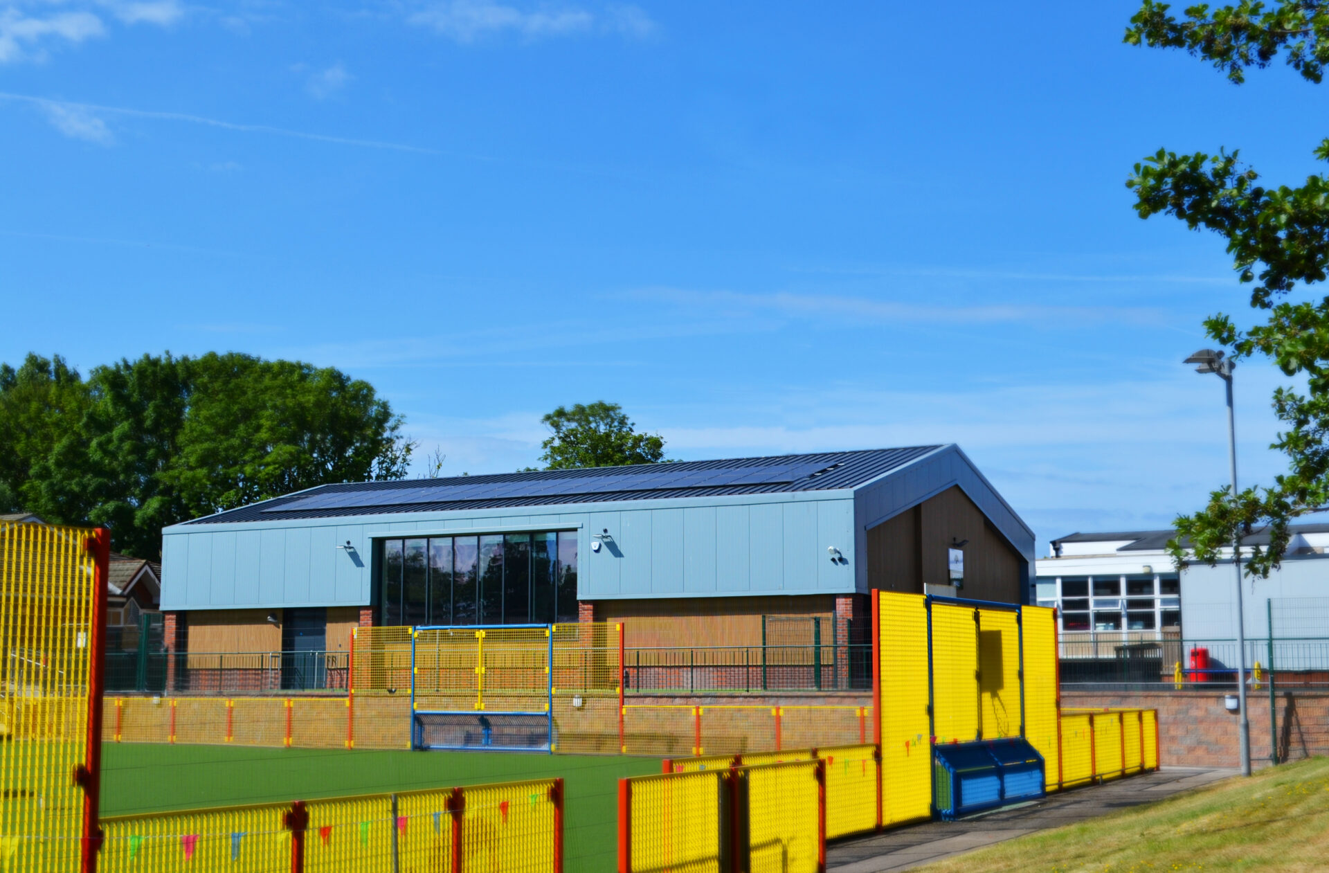 “There are a range of features in the building such as plug sockets at a higher level and recessed door handles which support this hybrid facility. The sports hall is also highly sustainable and includes state-of-the-art heat pump technology as well as solar PV technology on the roof.”