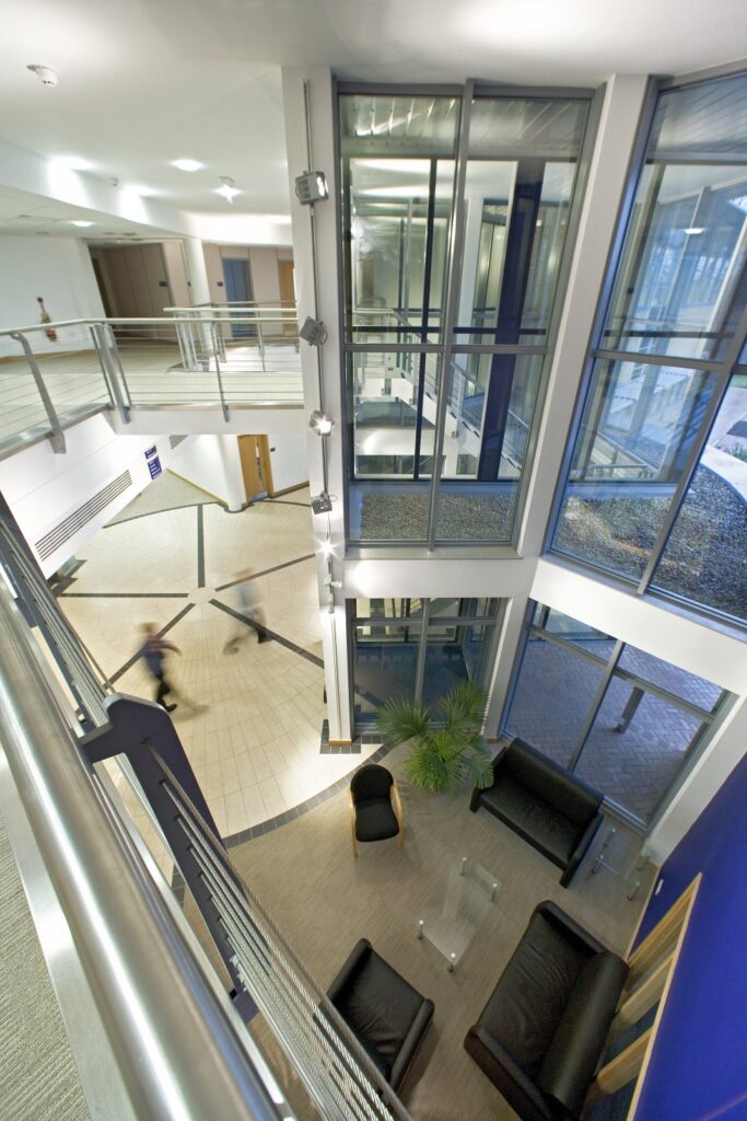 The building comprises a series of Incubator Units varying in size from 500 to 3000 sq. ft. The units are set around a central open courtyard with a feature entrance leading from on site car parking. The project was completed in 2004 with a contract sum of £4,500,000.