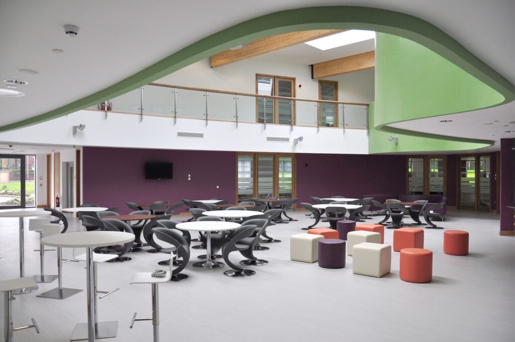 The proposal was for a new build 250 place 16 -19 6th Form Centre on land adjoining the existing school site. The new development provides modern teaching accommodation for several different vocational courses to be taught including Hospitality & Catering, Performing & Production Arts, Sports & Fitness, Hair & Beauty, Media Studies, and IT & Business Studies. These courses will have a flexible curriculum within the new building with links to existing industry within Prestwich and the surrounding area.