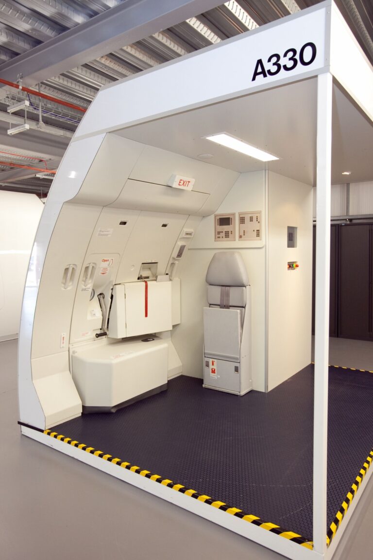 Oxford Aviation Academy, based at Woodford Aerodrome, approached BAE Systems to extend their current civil aircraft simulator and training facility. The brief was to create a purpose built extension to train future Cabin Crew staff for Thomas Cook.